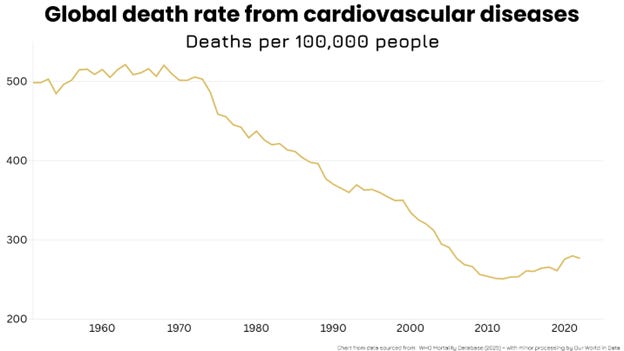 Likewise, a century of improvements in surgical procedures, drugs and treatments have led to remarkable progress in reducing death from the current leading cause of death, cardiovascular disease.