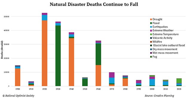 I always struggled to square that apocalypse script with the fact climate-related deaths have been falling for a century:
