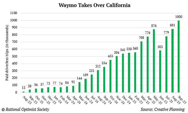 “Waymo changed how regular people feel about technology. In the 2010s, tech meant software apps, tiny upgrades on a glowing rectangle. Waymo is the first time normal people can feel the future. A robot pulls up. You get in. It drives you across town. No explanation needed.”