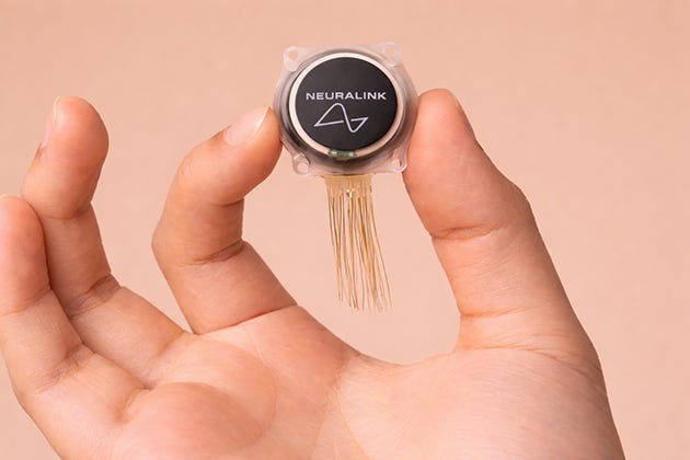 Thanks to this quarter-sized chip from Neuralink, which slides under his skull and nestles against his brain, Brad can now talk with his family for the first time in years.
