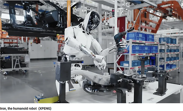 And they are quickly moving up the sophistication scale. Pictured below is the Iron robot from Chinese company XPENG. It is already being deployed in factories, and is now being tested in households. Keep Iron in mind as we discuss the heated competition for humanoid robots a bit further on.